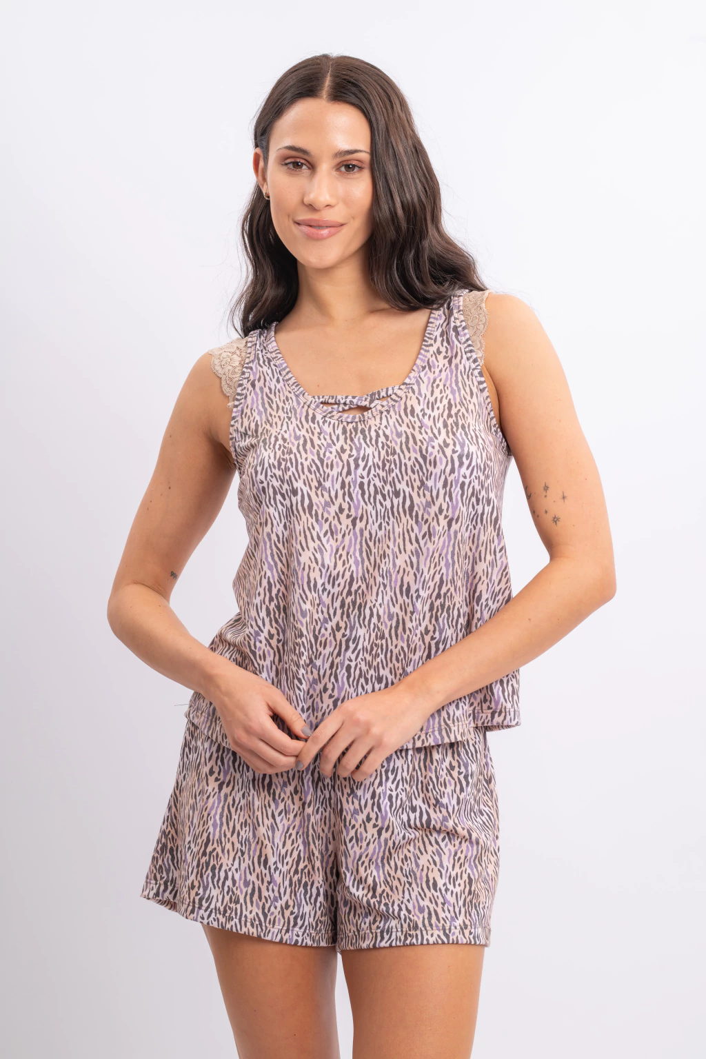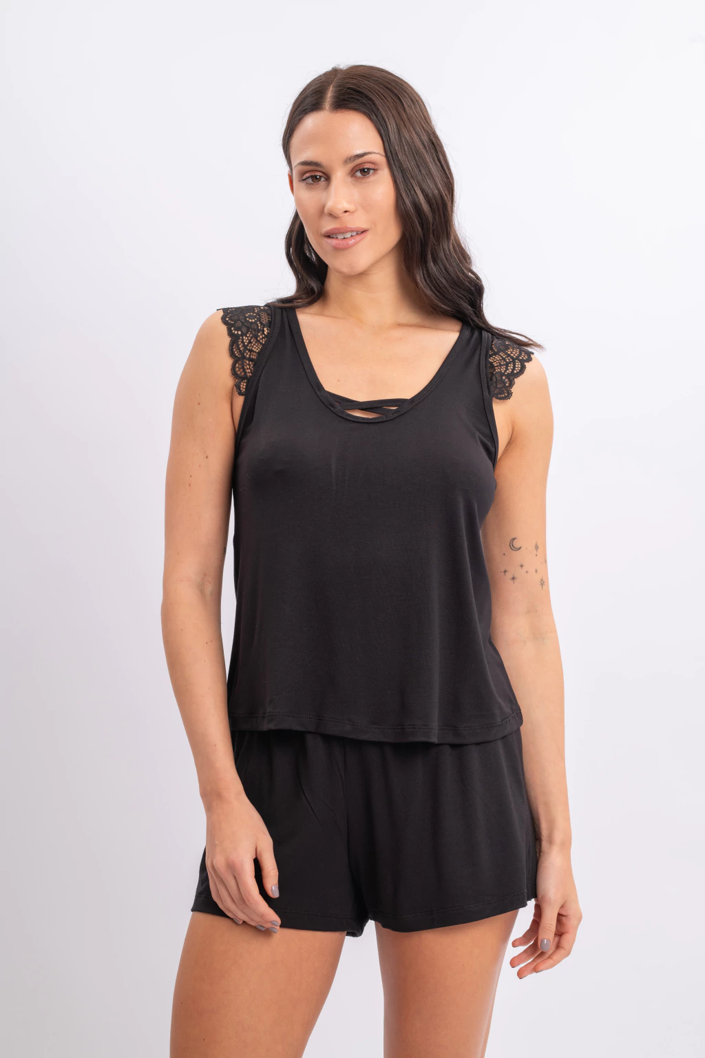 Pijama modal sin mangas con detalless de puntilla y escote con tiritas Roma.