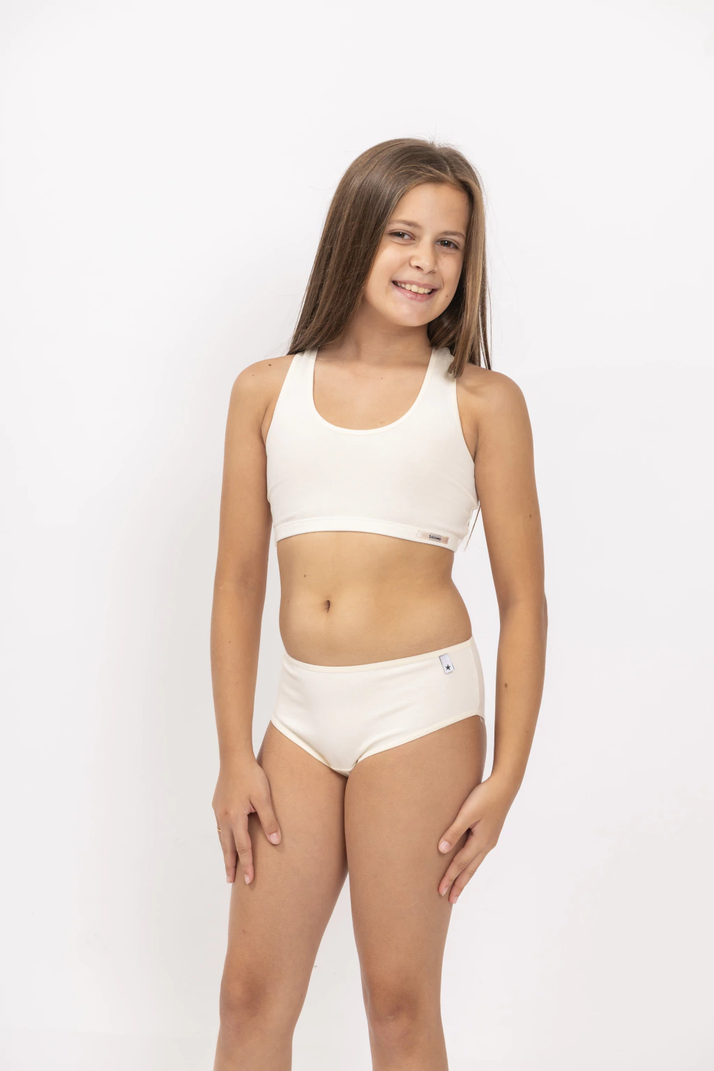 Descubrí el Top Juvenil de Algodón con Lycra con Espalda deportiva, diseñado especialmente para las adolescentes y preadolescentes. Este top es ideal para el primer corpiño, ofreciendo la comodidad y el soporte que ellas necesitan en esta etapa de crecimiento.
